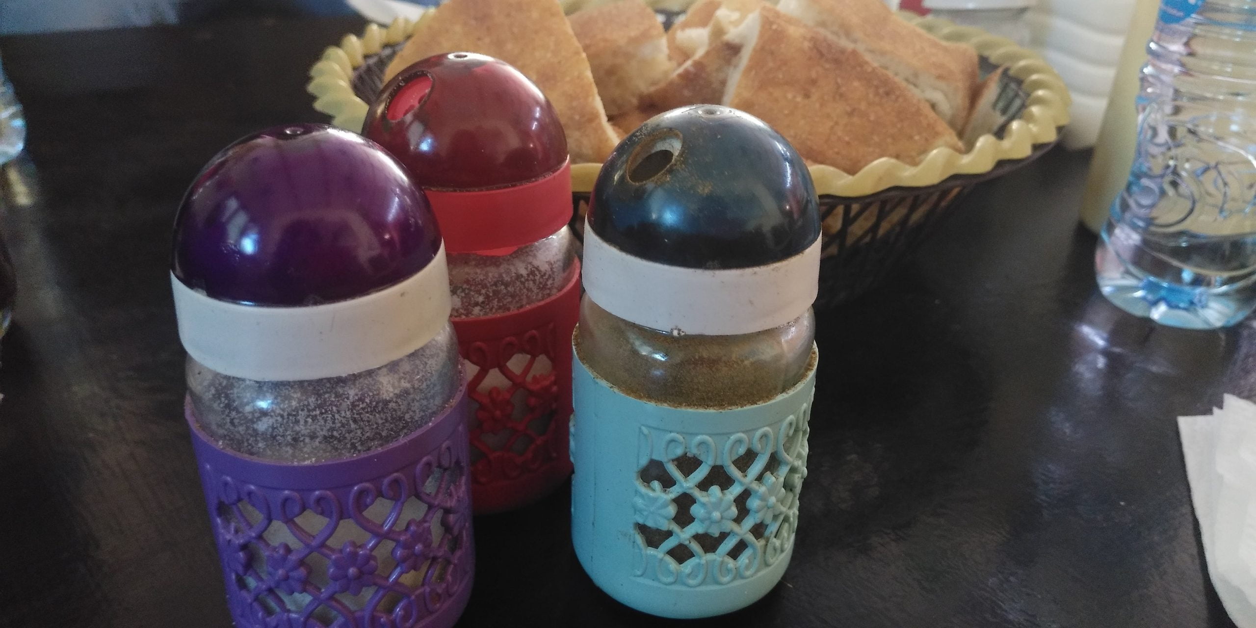 Estábamos llegando y apenas se veía, nos encontramos con una pequeña tormenta de arena que nos impedía ver con claridad. Cuando ya nos acercamos, vi que era una casita típica de adobe con unas buenas letras azules con el nombre del local “Restaurante Nora”…