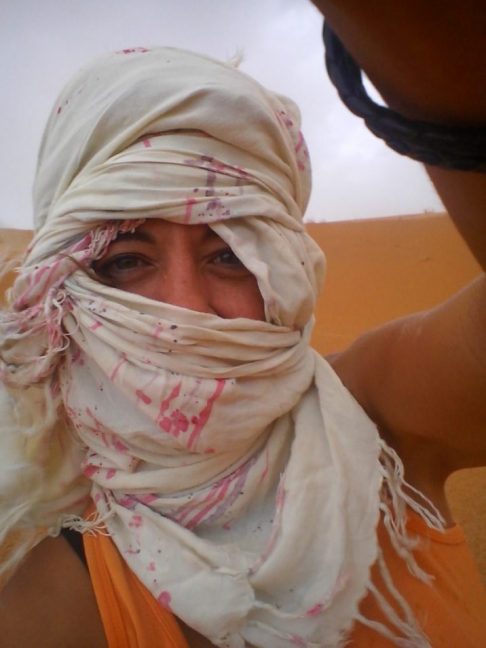 Esta tela, me acompaña modo turbante por la arena del Erg Chebbi, en un recuerdo de pareo modo arena de Sa Caleta. Es lo que tiene vivir entre dos paraisos!!